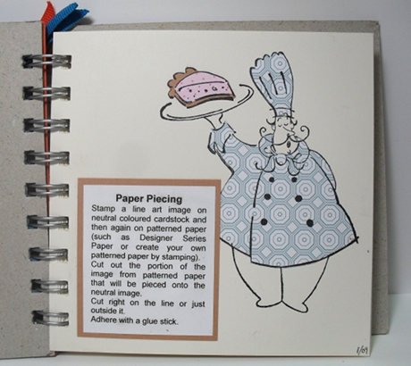 We decided we need a place to store all our techniques so that even if the cards were given away the technique wouldn't be forgotten. The journal is Stampin' Up's On Board Art Journal (5"x5") which includes 20 sheets of Very Vanilla cardstock… absolutely perfect for stamping on!